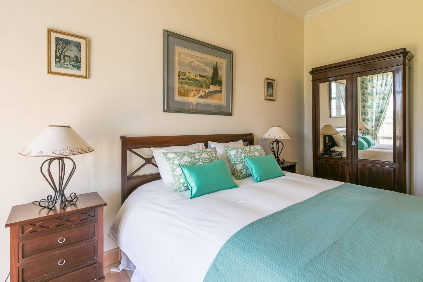 Notre chambre Calle Larga située au rez-de-chaussée comprend un lit queen-size. Sa salle de bain privative est entièrement équipée d'une baignoire, une double vasque et de produits d'acceuil. Sèche-cheveux disponible sur demande. Vue sur jardin.